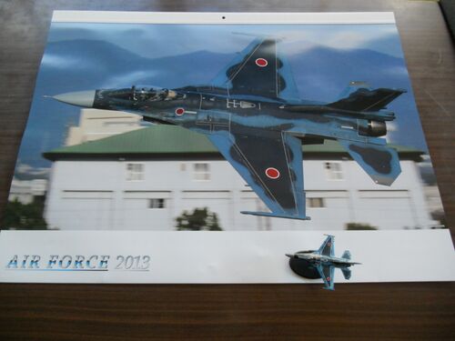 2013年度のカレンダーです! F-2戦闘機かっこいいっ d(^^) ちびっこい模型はうちに転がってた何かのオマケ でも、このカレンダー毎年取引先から購入してるんです(半強制的に) ま、かっこいいから良いんですけどね 会社と息子用に今年は2部購入