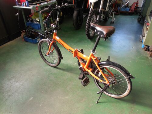 今回はパンク修理です。 といってもバイクではなく”自転車”(しかも息子の ^^;) 車両はこれ。 パナソニックの折りたたみ携帯自転車! なかなか重宝なヤツです。 ( ゚д゚ ) たしかにパンクしてますね。 さくっと車輪をはずし… リムからタイヤをはずすのにレバ…